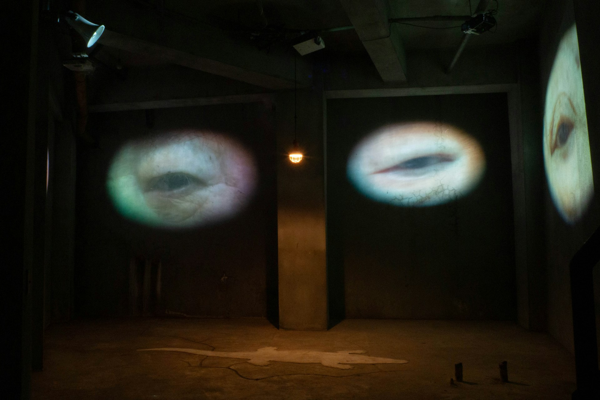 video, rug, horn speaker, floodlight, signboard